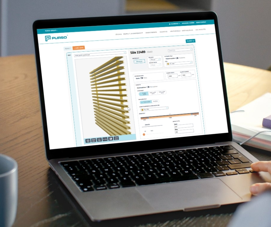 Sälesuunnittelu on tehty helpoksi tuotevalitsimessa. Siellä voit valita mieleisen sälemallin viidestä tuoteperheestä (Oslo, Stockholm, Copenhagen, Helsinki ja Tallinn), haluamasi pintakäsittelyn ja värin, sälejaon ja asennussuunnan. Tuotevalitsimen 3D-moottori visualisoi säleikön silmänräpäyksessä valintojesi mukaan. Järjestelmä laskee myös määrät sekä ehdottaa pituudet profiileille, kun syötät säleikkösi mitat.